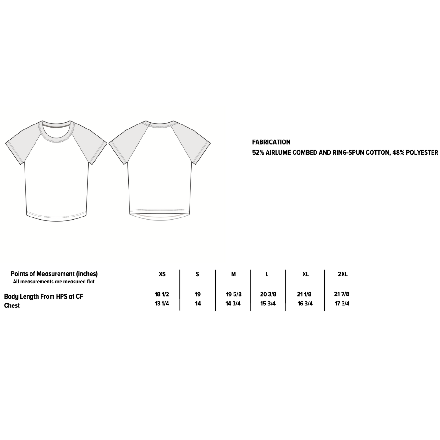 5.4 oz./yd², 52/48 Airlume combed and ring-spun cotton/polyester, 32 singles